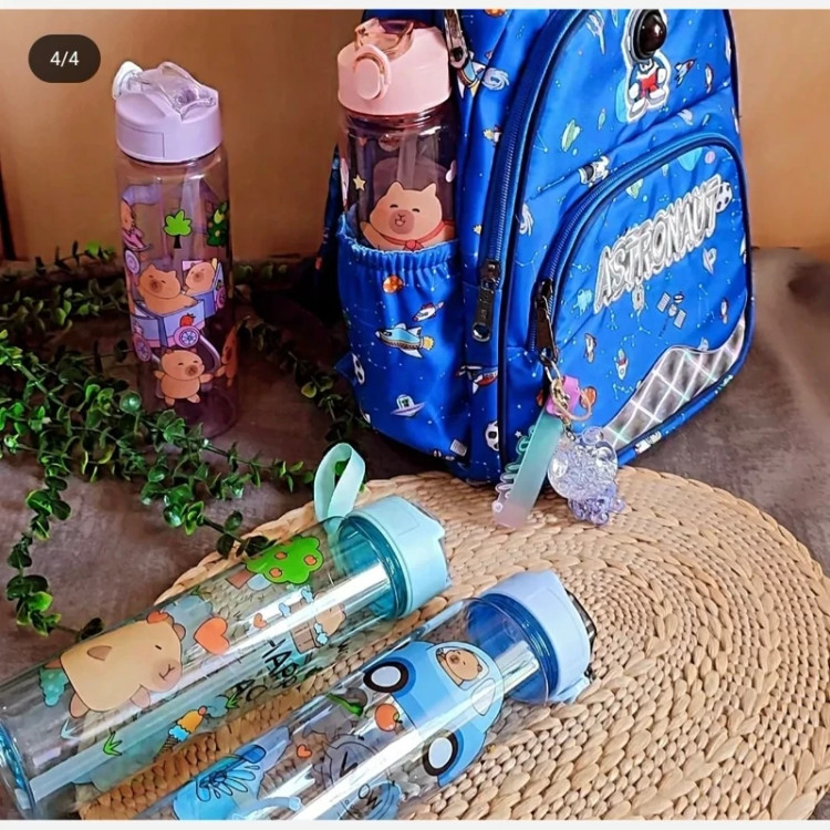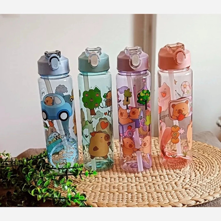 قمقمه آب بدنه شفاف داری نی گنجایش تقریبا 4 لیوان بزرگ 4 رنگ مختلف کاملا کاربردی و زیبا و سبک قیمت استثنایی